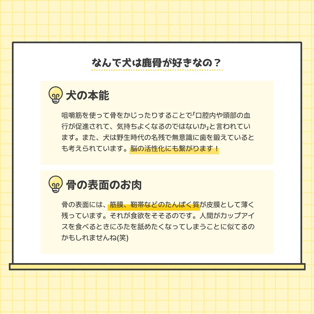 エゾ鹿の骨は、噛みたい・かじりたいという本能を持っている犬の欲求を満たしてくれます♫
